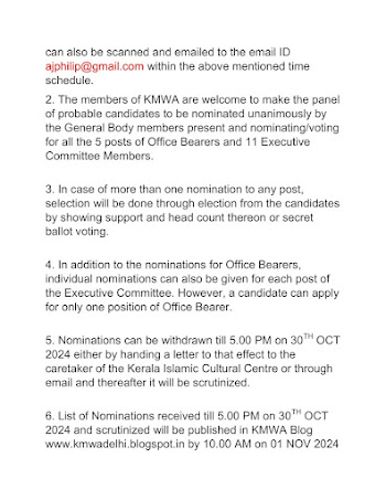 A common platform for Keralites in Delhi. Registration No.S-20900/90. (PAN No.AABTK2637G) email: kmwadelhi@gmail.com, secretrykmwa@gmail.com Address: KMWA Socio Cultural Centre, Institutional Area, Pocket 3, Mayur Vihar Phase 1, Delhi-110091, Tel. No. 011 22714858